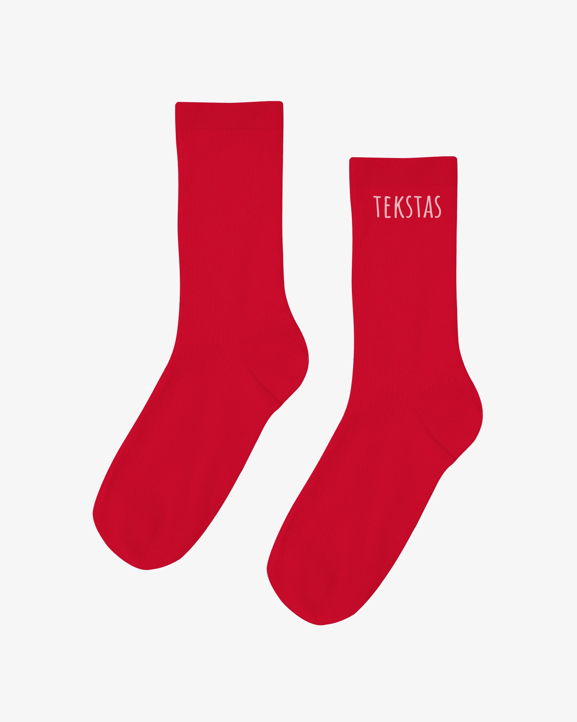 Kojinės su užrašu. Kokybiškos kojinės garantuoja ilgą naudojimą, kadangi yra tvirtos. Galima pasirinkti teksto šriftą