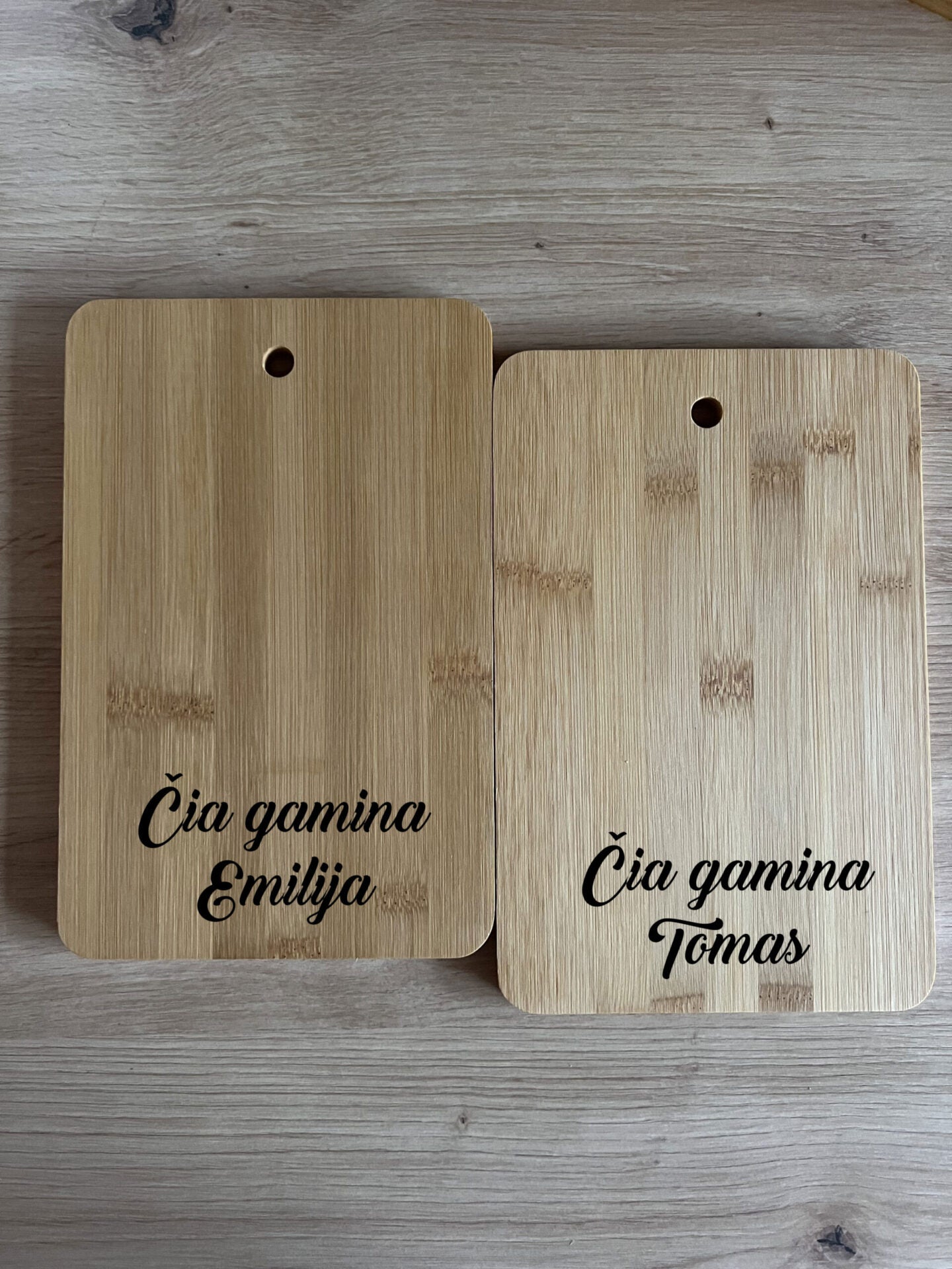 Praktiškas ir stilingas pjaustymo lentelių rinkinys (2 vnt.) tai puikus pasirinkimas Jūsų virtuvei ar dovanai. Šis rinkinys leidžia pridėti unikalų tekstą pagal Jūsų pageidavimą, todėl jis tampa ypatinga personalizuota dovana artimiesiems ar elegantišku akcentu Jūsų namuose.